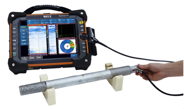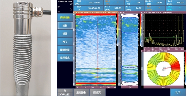 螺栓相控阵检测方案 >>产品留言 产品介绍产品参数检测图库下载 菊花阵探头做 360°圆周线性电子扫查,无需旋转即可发现所有角度上的缺陷,使检测变得更加简单、快捷。 菊花阵探头有周向“C”扫图,可以直观的得到缺陷在端面俯视图中的位置信息,使检测变得更加直观。 菊花阵探头可以检测中间带孔的螺栓,而线阵探头检测中间带孔的螺栓信号会受到阻挡,而导致不可检。 检测效果: 应用场景: